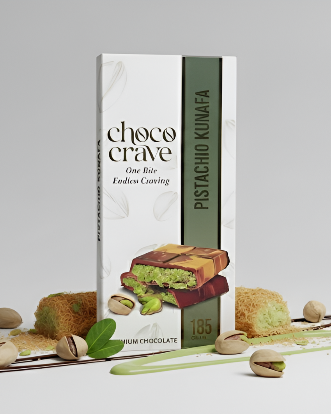 A luxurious fusion of roasted pistachio, crispy kunafa, and premium chocolate.